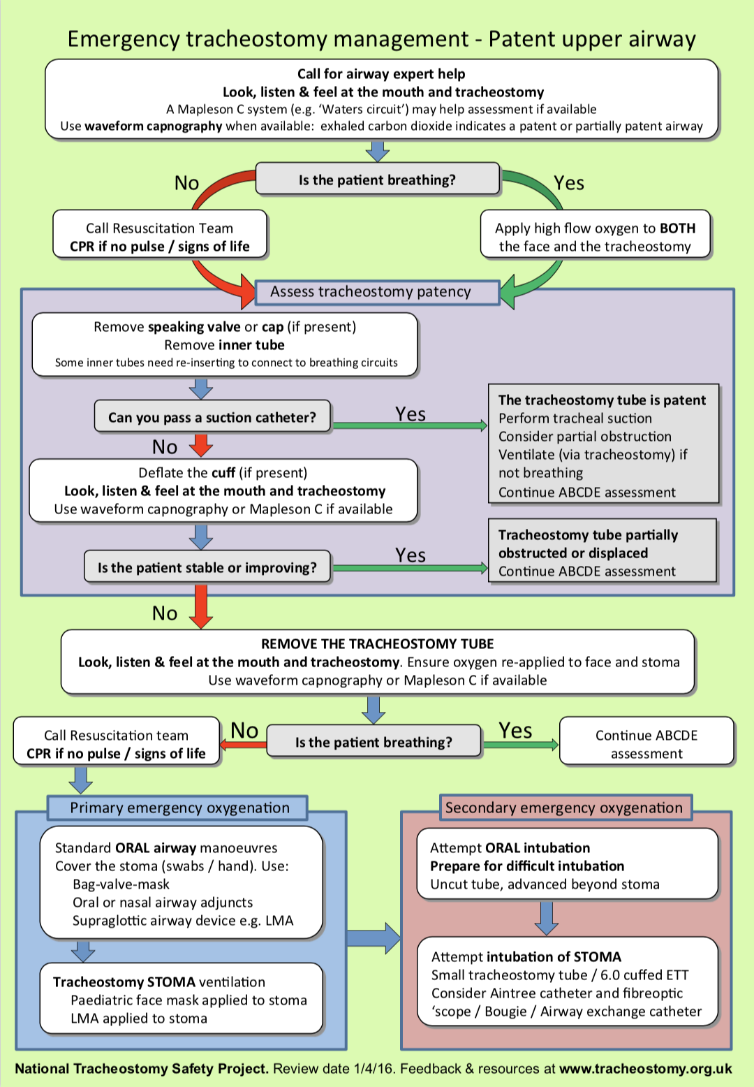 Can I also ask all trainees and fellows to look at the e-learning associated with the National Tracheostomy Safety Project. If anyone is particularly motivated or interested in further reading there is an excellent free access web site on the St George’s intranet which has a great section on tracheostomy troubleshooting. This can be found here.